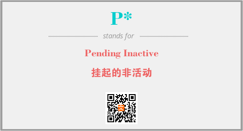 上述内容是“Pending Inactive”作为“P*”的缩写,解释为“挂起的非活动”时的信息,以及英文缩略词P*所代表的英文单词,其对应的中文拼音、详细解释以及在英文中的流行度和相关分类、应用领域及应用示例等。
