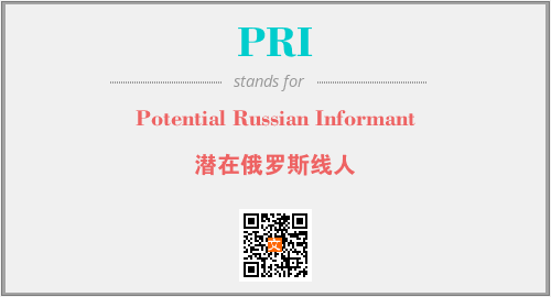 英文缩略词“PRI”经常作为“Potential Russian Informant”的英文缩写来使用,中文表示:“潜在俄罗斯线人”。本文将详细介绍英文缩写词PRI所代表英文单词,其对应的中文拼音、详细解释以及在英语中的流行度。此外,还有关于缩略词PRI的分类、应用领域及相关应用示例等。