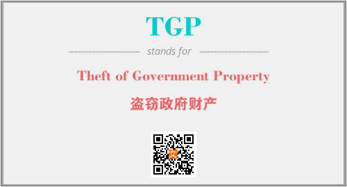 英文缩略词“TGP”经常作为“Theft of Government Property”的英文缩写来使用,中文表示:“盗窃政府财产”。本文将详细介绍英文缩写词TGP所代表英文单词,其对应的中文拼音、详细解释以及在英语中的流行度。此外,还有关于缩略词TGP的分类、应用领域及相关应用示例等。