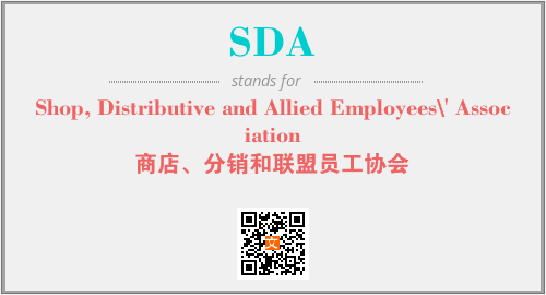 上述内容是“Shop, Distributive and Allied Employees\' Association”作为“SDA”的缩写,解释为“商店、分销和联盟员工协会”时的信息,以及英文缩略词SDA所代表的英文单词,其对应的中文拼音、详细解释以及在英文中的流行度和相关分类、应用领域及应用示例等。