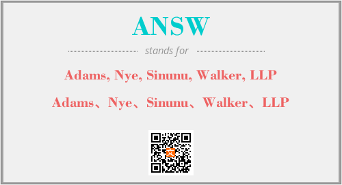 以上为Adams, Nye, Sinunu, Walker, LLP英文缩略词ANSW的中文解释,以及该英文缩写在英语的流行度、分类和应用领域方面的信息。