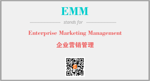 英文缩略词“EMM”经常作为“Enterprise Marketing Management”的英文缩写来使用,中文表示:“企业营销管理”。本文将详细介绍英文缩写词EMM所代表英文单词,其对应的中文拼音、详细解释以及在英语中的流行度。此外,还有关于缩略词EMM的分类、应用领域及相关应用示例等。
