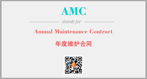 上述内容是“Annual Maintenance Contract”作为“AMC”的缩写,解释为“年度维护合同”时的信息,以及英文缩略词AMC所代表的英文单词,其对应的中文拼音、详细解释以及在英文中的流行度和相关分类、应用领域及应用示例等。