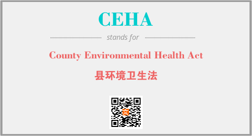 英文缩略词“CEHA”经常作为“County Environmental Health Act”的英文缩写来使用,中文表示:“县环境卫生法”。本文将详细介绍英文缩写词CEHA所代表英文单词,其对应的中文拼音、详细解释以及在英语中的流行度。此外,还有关于缩略词CEHA的分类、应用领域及相关应用示例等。
