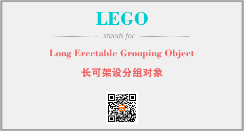 上述内容是“Long Erectable Grouping Object”作为“LEGO”的缩写,解释为“长可架设分组对象”时的信息,以及英文缩略词LEGO所代表的英文单词,其对应的中文拼音、详细解释以及在英文中的流行度和相关分类、应用领域及应用示例等。