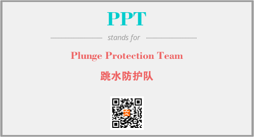 上述内容是“Plunge Protection Team”作为“PPT”的缩写,解释为“跳水防护队”时的信息,以及英文缩略词PPT所代表的英文单词,其对应的中文拼音、详细解释以及在英文中的流行度和相关分类、应用领域及应用示例等。