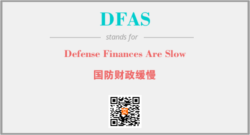 上述内容是“Defense Finances Are Slow”作为“DFAS”的缩写,解释为“国防财政缓慢”时的信息,以及英文缩略词DFAS所代表的英文单词,其对应的中文拼音、详细解释以及在英文中的流行度和相关分类、应用领域及应用示例等。
