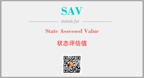 上述内容是“State Assessed Value”作为“SAV”的缩写,解释为“状态评估值”时的信息,以及英文缩略词SAV所代表的英文单词,其对应的中文拼音、详细解释以及在英文中的流行度和相关分类、应用领域及应用示例等。