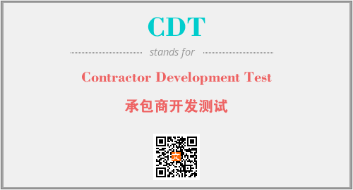 英文缩略词“CDT”经常作为“Contractor Development Test”的英文缩写来使用,中文表示:“承包商开发测试”。本文将详细介绍英文缩写词CDT所代表英文单词,其对应的中文拼音、详细解释以及在英语中的流行度。此外,还有关于缩略词CDT的分类、应用领域及相关应用示例等。