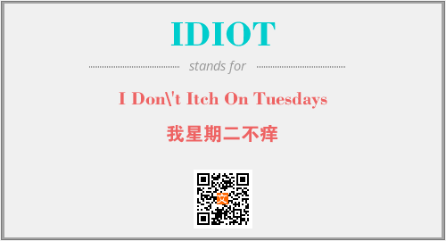 以上为I Don\'t Itch On Tuesdays英文缩略词IDIOT的中文解释,以及该英文缩写在英语的流行度、分类和应用领域方面的信息。
