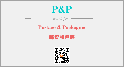 英文缩略词“P&P”经常作为“Postage & Packaging”的英文缩写来使用,中文表示:“邮资和包装”。本文将详细介绍英文缩写词P&P所代表英文单词,其对应的中文拼音、详细解释以及在英语中的流行度。此外,还有关于缩略词P&P的分类、应用领域及相关应用示例等。