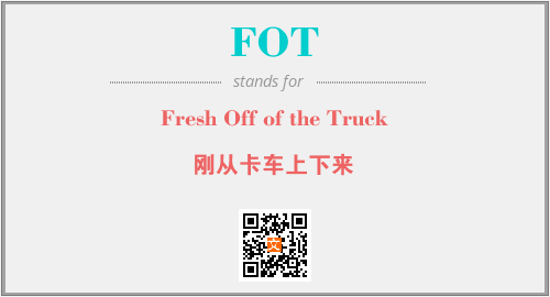 英文缩略词“FOT”经常作为“Fresh Off of the Truck”的英文缩写来使用,中文表示:“刚从卡车上下来”。本文将详细介绍英文缩写词FOT所代表英文单词,其对应的中文拼音、详细解释以及在英语中的流行度。此外,还有关于缩略词FOT的分类、应用领域及相关应用示例等。