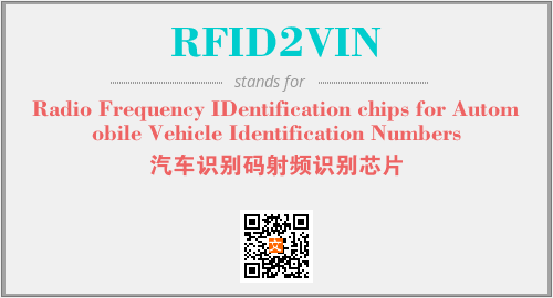 上述内容是“Radio Frequency IDentification chips for Automobile Vehicle Identification Numbers”作为“RFID2VIN”的缩写,解释为“汽车识别码射频识别芯片”时的信息,以及英文缩略词RFID2VIN所代表的英文单词,其对应的中文拼音、详细解释以及在英文中的流行度和相关分类、应用领域及应用示例等。