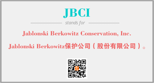 上述内容是“Jablonski Berkowitz Conservation, Inc.”作为“JBCI”的缩写,解释为“Jablonski Berkowitz保护公司(股份有限公司)。”时的信息,以及英文缩略词JBCI所代表的英文单词,其对应的中文拼音、详细解释以及在英文中的流行度和相关分类、应用领域及应用示例等。