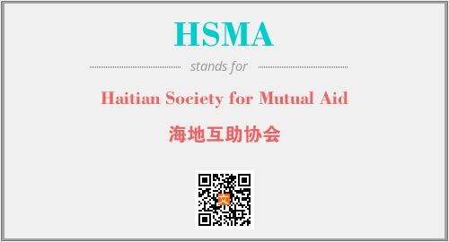 上述内容是“Haitian Society for Mutual Aid”作为“HSMA”的缩写,解释为“海地互助协会”时的信息,以及英文缩略词HSMA所代表的英文单词,其对应的中文拼音、详细解释以及在英文中的流行度和相关分类、应用领域及应用示例等。