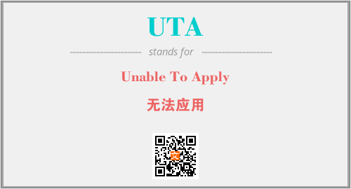 上述内容是“Unable To Apply”作为“UTA”的缩写,解释为“无法应用”时的信息,以及英文缩略词UTA所代表的英文单词,其对应的中文拼音、详细解释以及在英文中的流行度和相关分类、应用领域及应用示例等。
