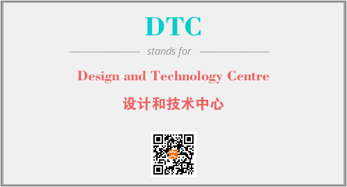 英文缩略词“DTC”经常作为“Design and Technology Centre”的英文缩写来使用,中文表示:“设计和技术中心”。本文将详细介绍英文缩写词DTC所代表英文单词,其对应的中文拼音、详细解释以及在英语中的流行度。此外,还有关于缩略词DTC的分类、应用领域及相关应用示例等。