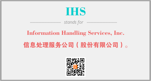 上述内容是“Information Handling Services, Inc.”作为“IHS”的缩写,解释为“信息处理服务公司(股份有限公司)。”时的信息,以及英文缩略词IHS所代表的英文单词,其对应的中文拼音、详细解释以及在英文中的流行度和相关分类、应用领域及应用示例等。