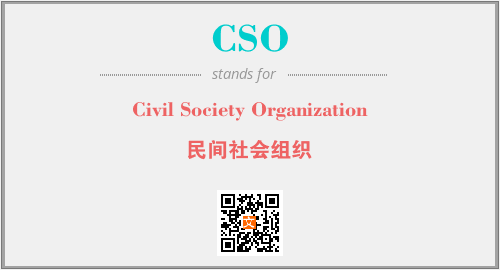 上述内容是“Civil Society Organization”作为“CSO”的缩写,解释为“民间社会组织”时的信息,以及英文缩略词CSO所代表的英文单词,其对应的中文拼音、详细解释以及在英文中的流行度和相关分类、应用领域及应用示例等。