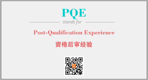 上述内容是“Post-Qualification Experience”作为“PQE”的缩写,解释为“资格后审经验”时的信息,以及英文缩略词PQE所代表的英文单词,其对应的中文拼音、详细解释以及在英文中的流行度和相关分类、应用领域及应用示例等。