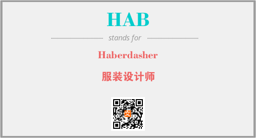 上述内容是“Haberdasher”作为“HAB”的缩写,解释为“服装设计师”时的信息,以及英文缩略词HAB所代表的英文单词,其对应的中文拼音、详细解释以及在英文中的流行度和相关分类、应用领域及应用示例等。