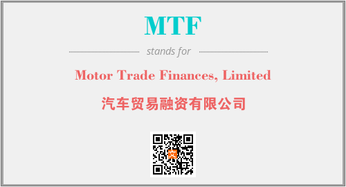 上述内容是“Motor Trade Finances, Limited”作为“MTF”的缩写,解释为“汽车贸易融资有限公司”时的信息,以及英文缩略词MTF所代表的英文单词,其对应的中文拼音、详细解释以及在英文中的流行度和相关分类、应用领域及应用示例等。