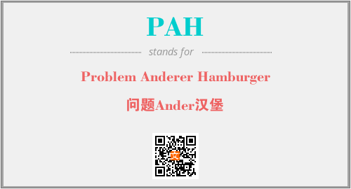 英文缩略词“PAH”经常作为“Problem Anderer Hamburger”的英文缩写来使用,中文表示:“问题Ander汉堡”。本文将详细介绍英文缩写词PAH所代表英文单词,其对应的中文拼音、详细解释以及在英语中的流行度。此外,还有关于缩略词PAH的分类、应用领域及相关应用示例等。