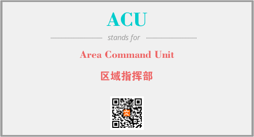 上述内容是“Area Command Unit”作为“ACU”的缩写,解释为“区域指挥部”时的信息,以及英文缩略词ACU所代表的英文单词,其对应的中文拼音、详细解释以及在英文中的流行度和相关分类、应用领域及应用示例等。