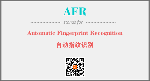 上述内容是“Automatic Fingerprint Recognition”作为“AFR”的缩写,解释为“自动指纹识别”时的信息,以及英文缩略词AFR所代表的英文单词,其对应的中文拼音、详细解释以及在英文中的流行度和相关分类、应用领域及应用示例等。
