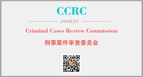 上述内容是“Criminal Cases Review Commission”作为“CCRC”的缩写,解释为“刑事案件审查委员会”时的信息,以及英文缩略词CCRC所代表的英文单词,其对应的中文拼音、详细解释以及在英文中的流行度和相关分类、应用领域及应用示例等。