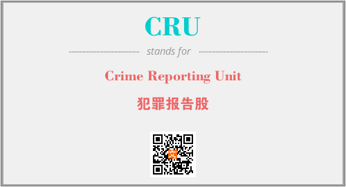 上述内容是“Crime Reporting Unit”作为“CRU”的缩写,解释为“犯罪报告股”时的信息,以及英文缩略词CRU所代表的英文单词,其对应的中文拼音、详细解释以及在英文中的流行度和相关分类、应用领域及应用示例等。