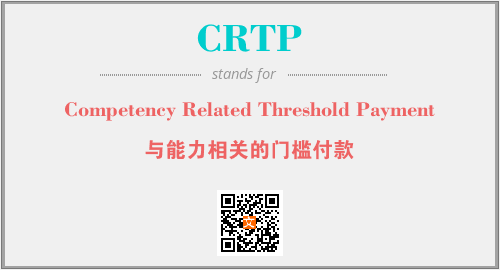 以上为Competency Related Threshold Payment英文缩略词CRTP的中文解释,以及该英文缩写在英语的流行度、分类和应用领域方面的信息。