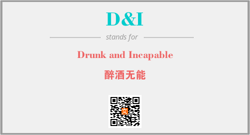 以上为Drunk and Incapable英文缩略词D&I的中文解释,以及该英文缩写在英语的流行度、分类和应用领域方面的信息。