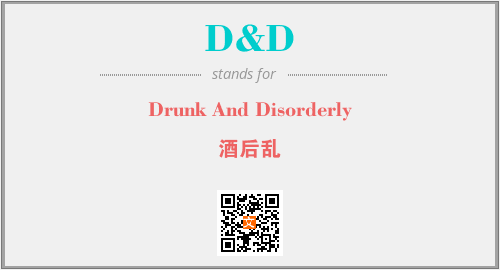 英文缩略词“D&D”经常作为“Drunk And Disorderly”的英文缩写来使用,中文表示:“酒后乱”。本文将详细介绍英文缩写词D&D所代表英文单词,其对应的中文拼音、详细解释以及在英语中的流行度。此外,还有关于缩略词D&D的分类、应用领域及相关应用示例等。