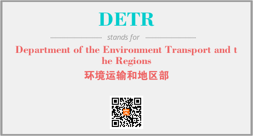上述内容是“Department of the Environment Transport and the Regions”作为“DETR”的缩写,解释为“环境运输和地区部”时的信息,以及英文缩略词DETR所代表的英文单词,其对应的中文拼音、详细解释以及在英文中的流行度和相关分类、应用领域及应用示例等。