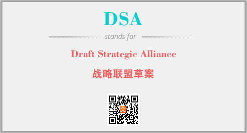 上述内容是“Draft Strategic Alliance”作为“DSA”的缩写,解释为“战略联盟草案”时的信息,以及英文缩略词DSA所代表的英文单词,其对应的中文拼音、详细解释以及在英文中的流行度和相关分类、应用领域及应用示例等。