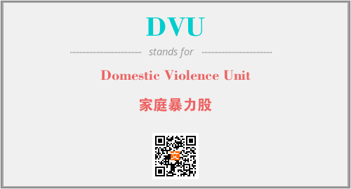 英文缩略词“DVU”经常作为“Domestic Violence Unit”的英文缩写来使用,中文表示:“家庭暴力股”。本文将详细介绍英文缩写词DVU所代表英文单词,其对应的中文拼音、详细解释以及在英语中的流行度。此外,还有关于缩略词DVU的分类、应用领域及相关应用示例等。