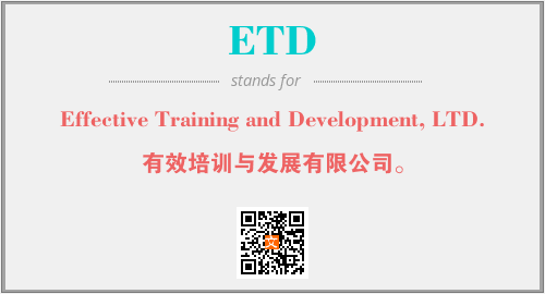 英文缩略词“ETD”经常作为“Effective Training and Development, LTD.”的英文缩写来使用,中文表示:“有效培训与发展有限公司。”。本文将详细介绍英文缩写词ETD所代表英文单词,其对应的中文拼音、详细解释以及在英语中的流行度。此外,还有关于缩略词ETD的分类、应用领域及相关应用示例等。