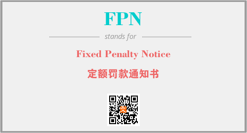 上述内容是“Fixed Penalty Notice”作为“FPN”的缩写,解释为“定额罚款通知书”时的信息,以及英文缩略词FPN所代表的英文单词,其对应的中文拼音、详细解释以及在英文中的流行度和相关分类、应用领域及应用示例等。