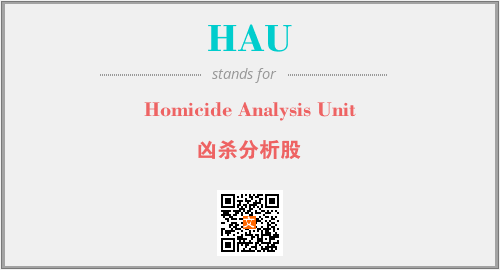 上述内容是“Homicide Analysis Unit”作为“HAU”的缩写,解释为“凶杀分析股”时的信息,以及英文缩略词HAU所代表的英文单词,其对应的中文拼音、详细解释以及在英文中的流行度和相关分类、应用领域及应用示例等。