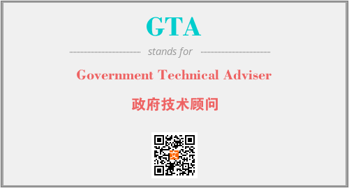 上述内容是“Government Technical Adviser”作为“GTA”的缩写,解释为“政府技术顾问”时的信息,以及英文缩略词GTA所代表的英文单词,其对应的中文拼音、详细解释以及在英文中的流行度和相关分类、应用领域及应用示例等。