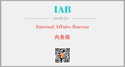 英文缩略词“IAB”经常作为“Internal Affairs Bureau”的英文缩写来使用,中文表示:“内务局”。本文将详细介绍英文缩写词IAB所代表英文单词,其对应的中文拼音、详细解释以及在英语中的流行度。此外,还有关于缩略词IAB的分类、应用领域及相关应用示例等。