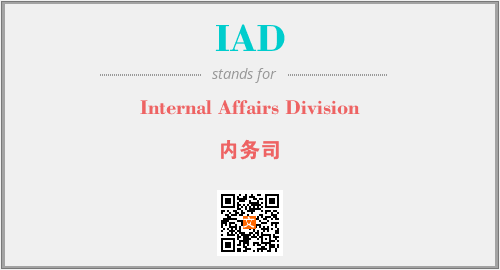 英文缩略词“IAD”经常作为“Internal Affairs Division”的英文缩写来使用,中文表示:“内务司”。本文将详细介绍英文缩写词IAD所代表英文单词,其对应的中文拼音、详细解释以及在英语中的流行度。此外,还有关于缩略词IAD的分类、应用领域及相关应用示例等。