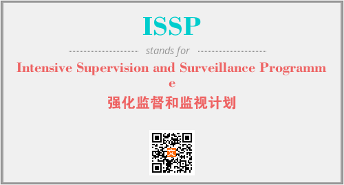 英文缩略词“ISSP”经常作为“Intensive Supervision and Surveillance Programme”的英文缩写来使用,中文表示:“强化监督和监视计划”。本文将详细介绍英文缩写词ISSP所代表英文单词,其对应的中文拼音、详细解释以及在英语中的流行度。此外,还有关于缩略词ISSP的分类、应用领域及相关应用示例等。