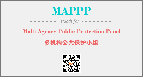 上述内容是“Multi Agency Public Protection Panel”作为“MAPPP”的缩写,解释为“多机构公共保护小组”时的信息,以及英文缩略词MAPPP所代表的英文单词,其对应的中文拼音、详细解释以及在英文中的流行度和相关分类、应用领域及应用示例等。