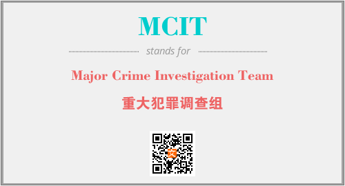 英文缩略词“MCIT”经常作为“Major Crime Investigation Team”的英文缩写来使用,中文表示:“重大犯罪调查组”。本文将详细介绍英文缩写词MCIT所代表英文单词,其对应的中文拼音、详细解释以及在英语中的流行度。此外,还有关于缩略词MCIT的分类、应用领域及相关应用示例等。