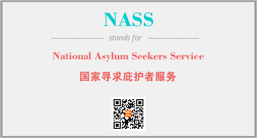 上述内容是“National Asylum Seekers Service”作为“NASS”的缩写,解释为“国家寻求庇护者服务”时的信息,以及英文缩略词NASS所代表的英文单词,其对应的中文拼音、详细解释以及在英文中的流行度和相关分类、应用领域及应用示例等。