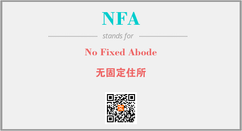 上述内容是“No Fixed Abode”作为“NFA”的缩写,解释为“无固定住所”时的信息,以及英文缩略词NFA所代表的英文单词,其对应的中文拼音、详细解释以及在英文中的流行度和相关分类、应用领域及应用示例等。