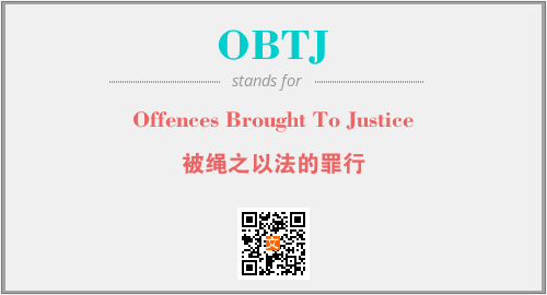 上述内容是“Offences Brought To Justice”作为“OBTJ”的缩写,解释为“被绳之以法的罪行”时的信息,以及英文缩略词OBTJ所代表的英文单词,其对应的中文拼音、详细解释以及在英文中的流行度和相关分类、应用领域及应用示例等。