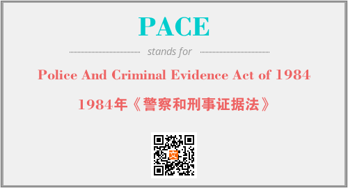 上述内容是“Police And Criminal Evidence Act of 1984”作为“PACE”的缩写,解释为“1984年《警察和刑事证据法》”时的信息,以及英文缩略词PACE所代表的英文单词,其对应的中文拼音、详细解释以及在英文中的流行度和相关分类、应用领域及应用示例等。